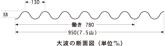 | 大波 | LC6 | 1,820 | 950 | ±5 | 6.3 | ±0.6 | 7.5 | 35以上 | 130 | 両端を除いた 5ピッチ当たり 650±2.0 |